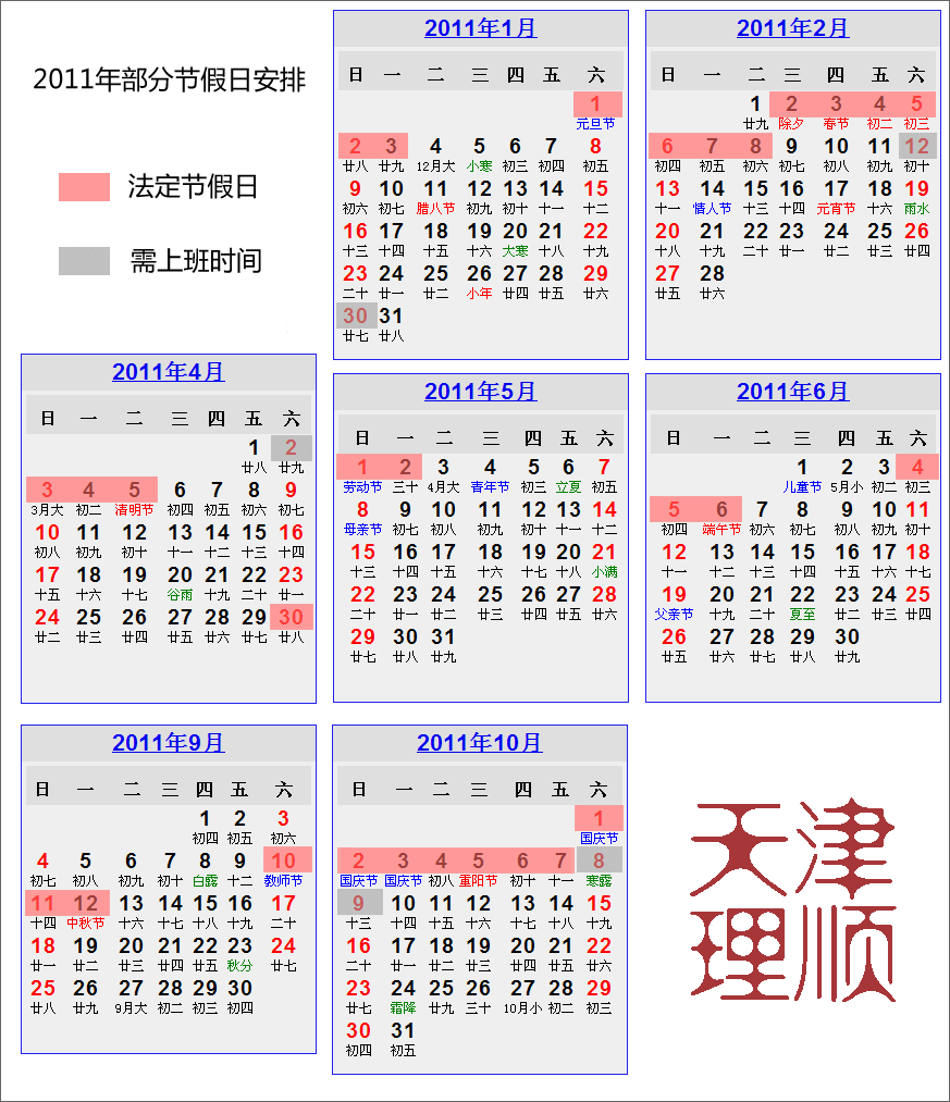 2011年节假日安排参考